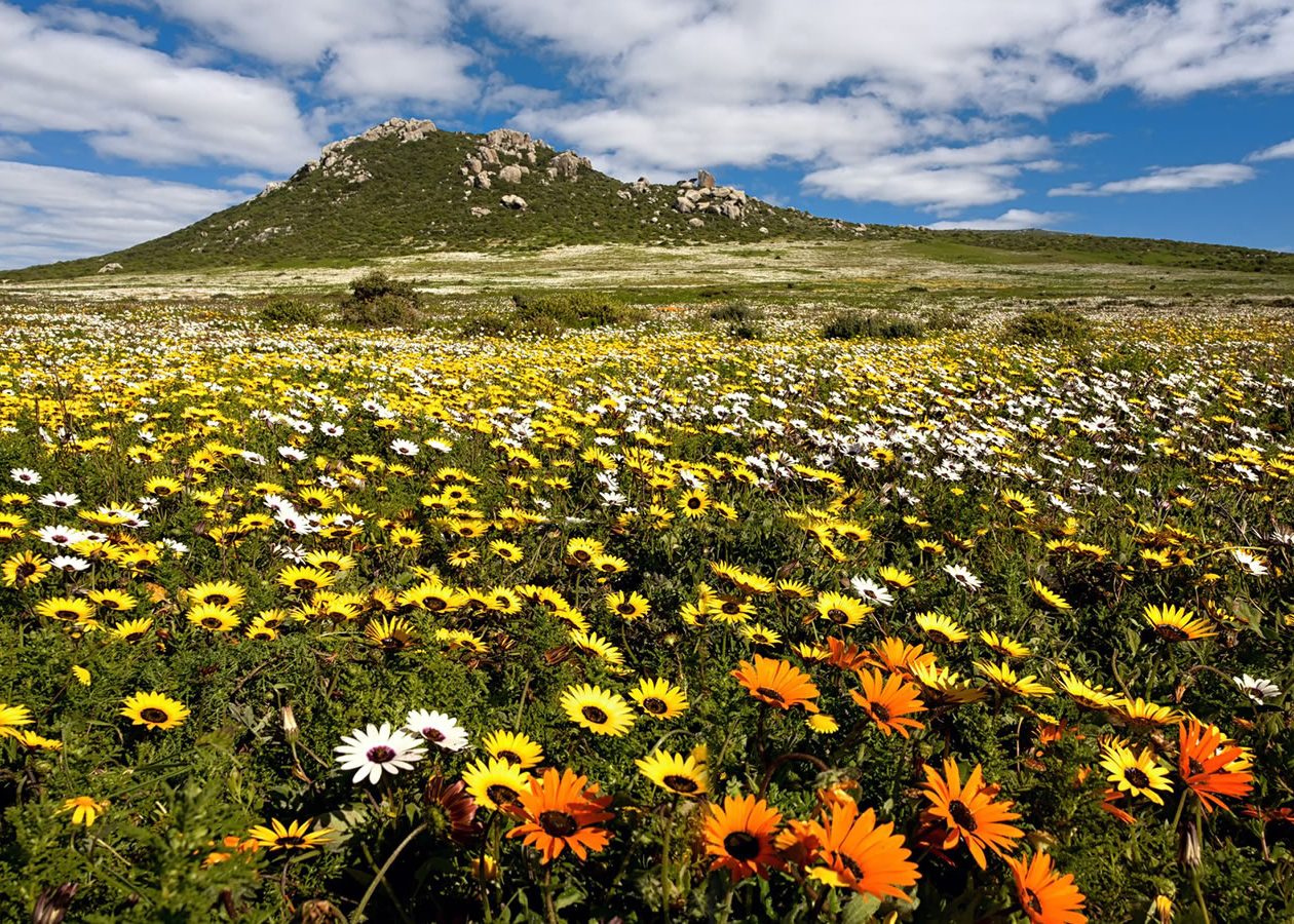 We depart Cape Town in the morning and travel up the West Coast towards Darling- where we visit Weylandts Wildflower Reserve, followed by a coffee stop in the town of Darling- owned by the famous comedian and actor Pieter Dirk Uys. We then travel to the outskirts of Darling and the Tienie Versveld Wildflower Reserve.